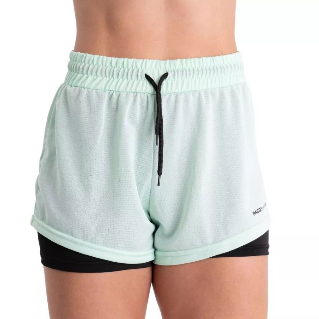 Short Feminino 2 em 1 | Dry Fit | Confort Bermuda Dupla com Compressão, Proteção UV e Bolso Oculto